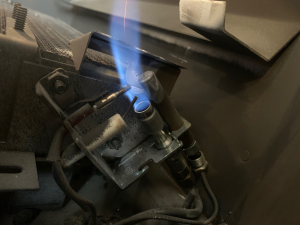 Standing (or millivolt) pilot systems are the simpler of the two categories. Typically, these are lit with two hands – one pushing/turning a knob to a “PILOT” position (which expels a small amount of gas through the pilot assembly), and the other hand clicking either an ignitor button or other source of spark to engage the flame. Once the pilot is lit, the knob will be held in for about 30 seconds to give the thermocouple (a small metal implement in the pilot assembly that produces small amounts of electricity when heated) time to warm up and “take over” for the knob being held in. The small amount of voltage produced by the thermocouple is what keeps the pilot flame on by electromagnetism – therefore, creating a self-checking system, meaning that if the flame is interrupted or turned off, the flow of gas will also shut off as well. Newer versions of these controls offer battery-assisted one-hand lighting, but ultimately, millivolt systems are lit by the homeowner or technician.